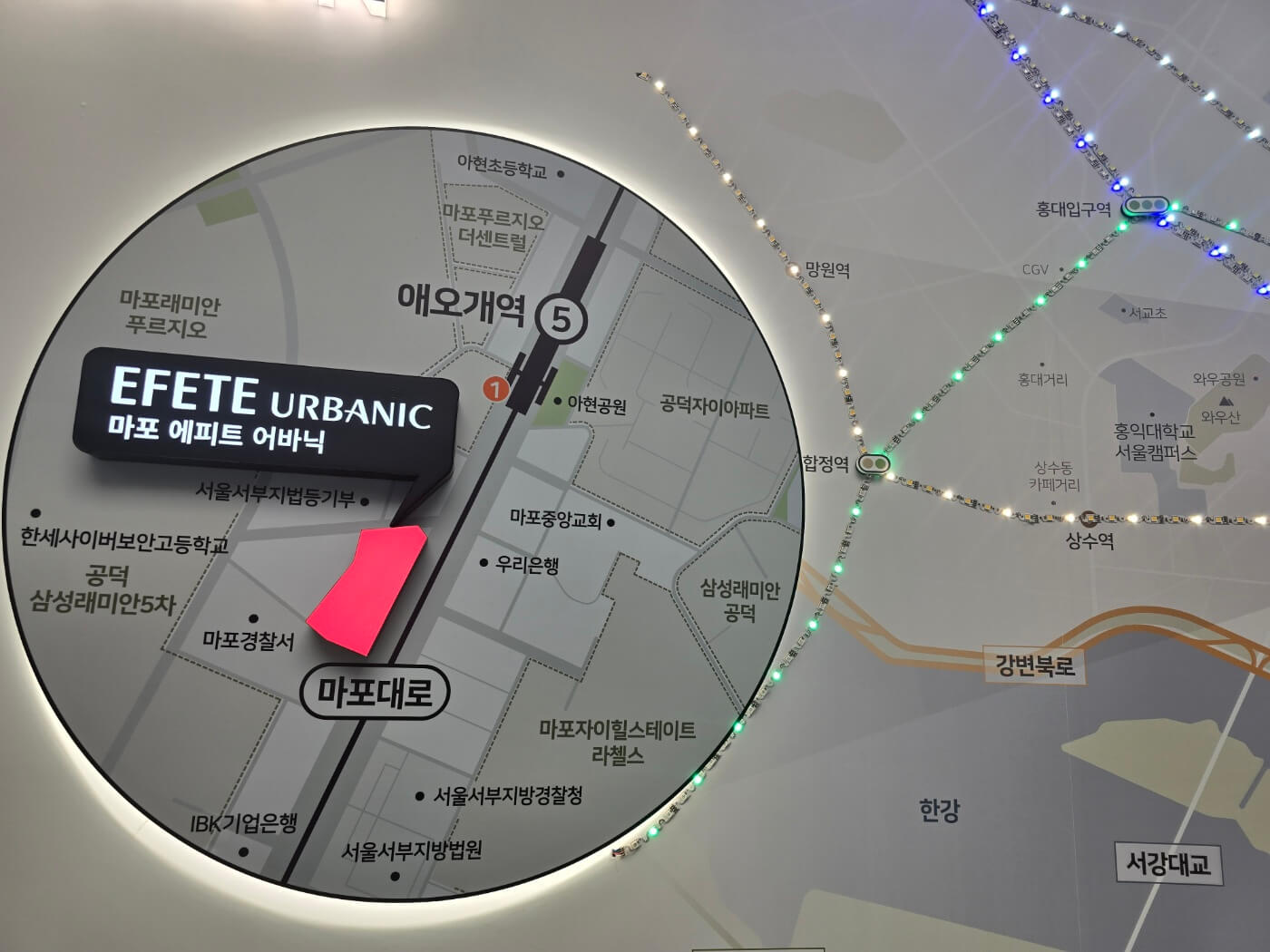 마포 에피트 어바닉은 서울의 주요 교통 요충지에 위치해 있습니다. 애오개역(지하철 5호선)을 도보로 이용할 수 있으며, 공덕역에서는 2호선, 6호선, 경의중앙선, 공항철도까지 모두 연결됩니다.