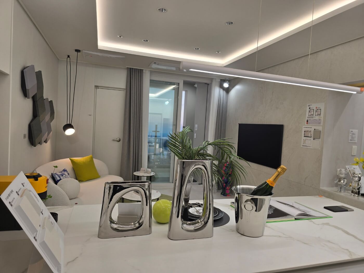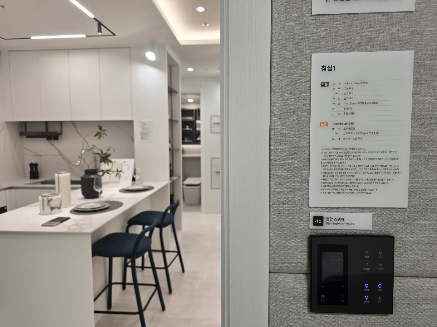 - 스마트 홈 시스템 적용: 전기, 가스 사용량 확인 및 엘리베이터 호출, 일괄 소등 가능.