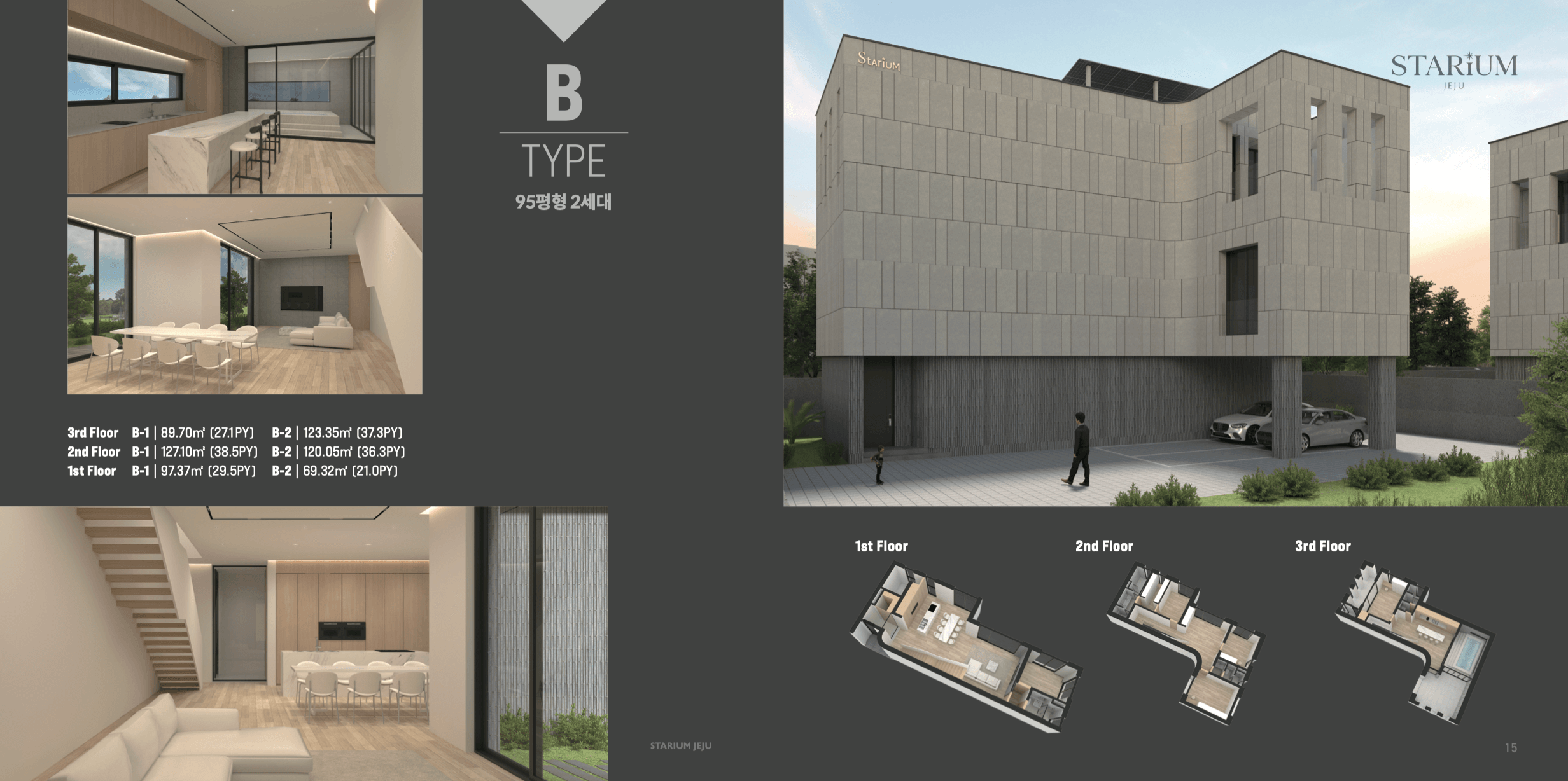 스타리움 제주의 디자인은 단순히 외형적인 아름다움뿐 아니라 실내 공간의 효율성과 가족의 동선을 최우선으로 고려해 설계되었습니다.