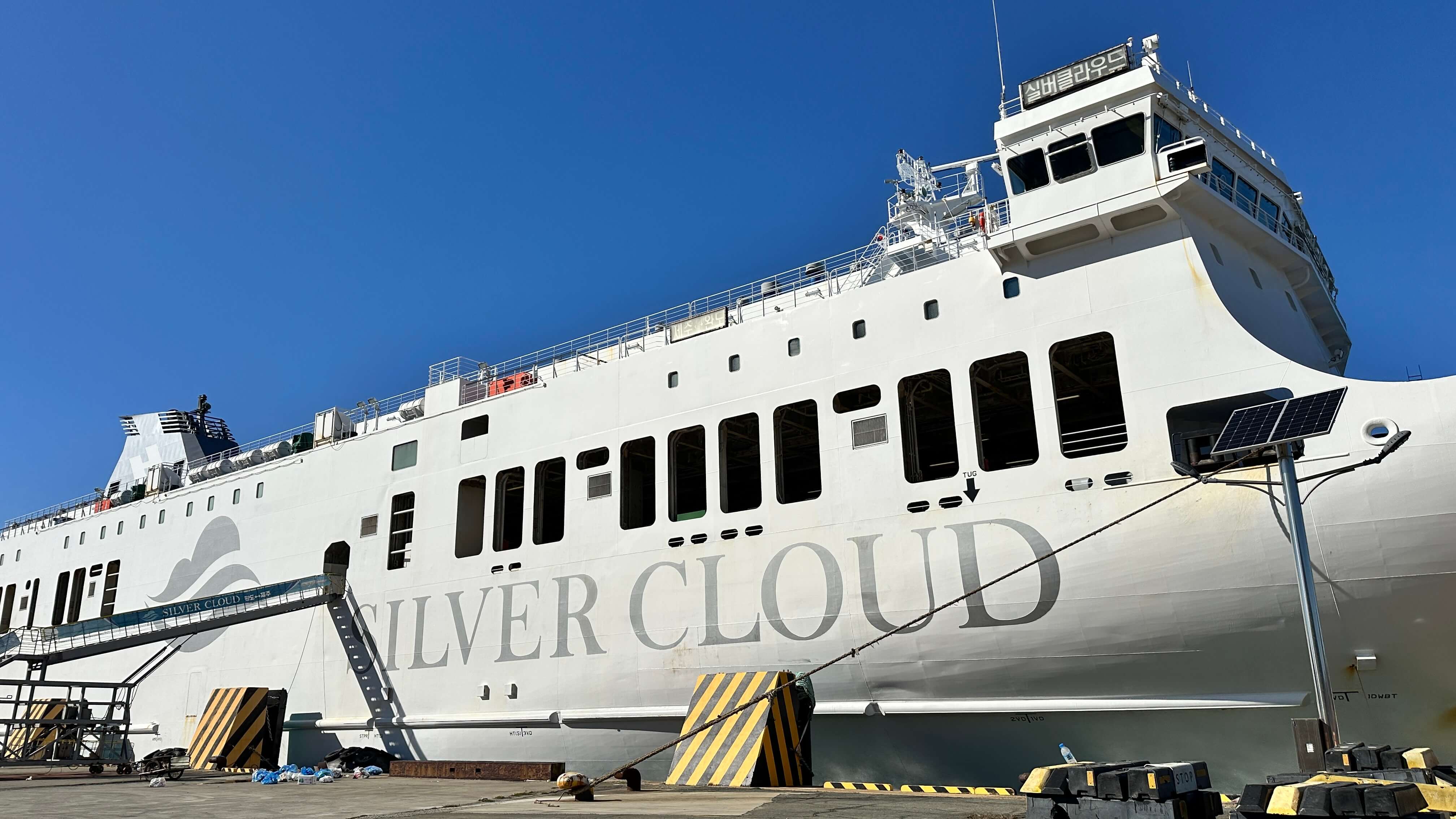 실버클라우드호의 운항 시간은 약 2시간 40분입니다. 다만, 접안 등의 과정을 포함하면 총 3시간 정도 소요될 수 있으니 참고하세요.