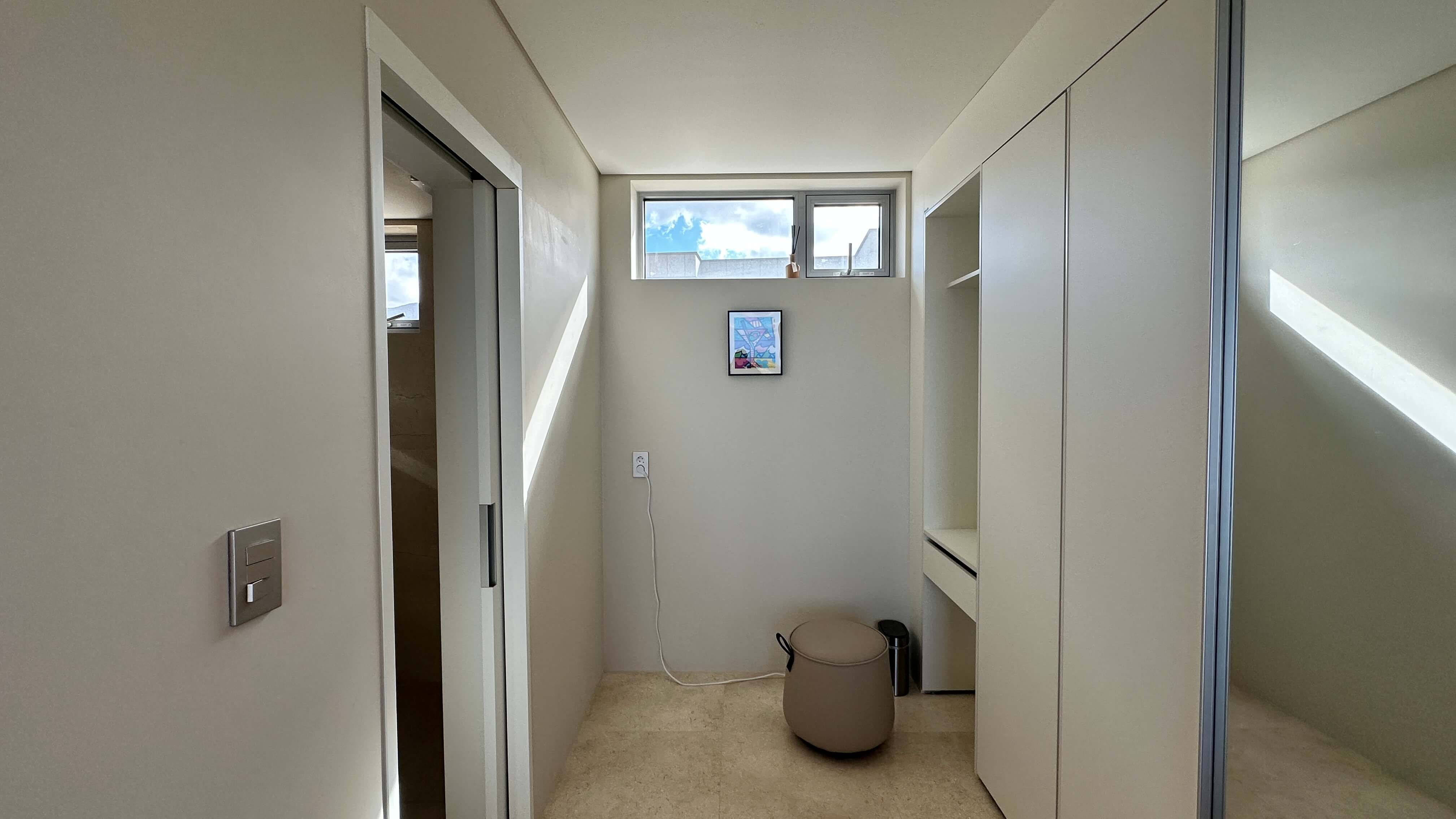 - 여유로운 침실 공간: 2층 중앙 계단을 사이로 두 개의 방이 분리되어 있으며, 특히 마스터룸(방3)은 침실, 브론즈 유리도어가 돋보이는 드레스룸, 파우더룸, 욕조가 있는 전용 욕실까지 완벽하게 갖추고 있어 고급 호텔 스위트룸을 연상케 합니다.