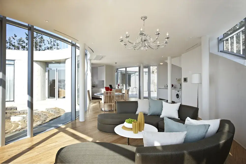 제주 롯데아트빌라스는 제주도의 자연과 어우러지는 독창적인 건축 디자인을 자랑합니다. 현대적인 감각과 제주 전통 돌담의 미학이 조화를 이루며, 객실 내부에서는 탁 트인 자연 경관을 감상할 수 있습니다.