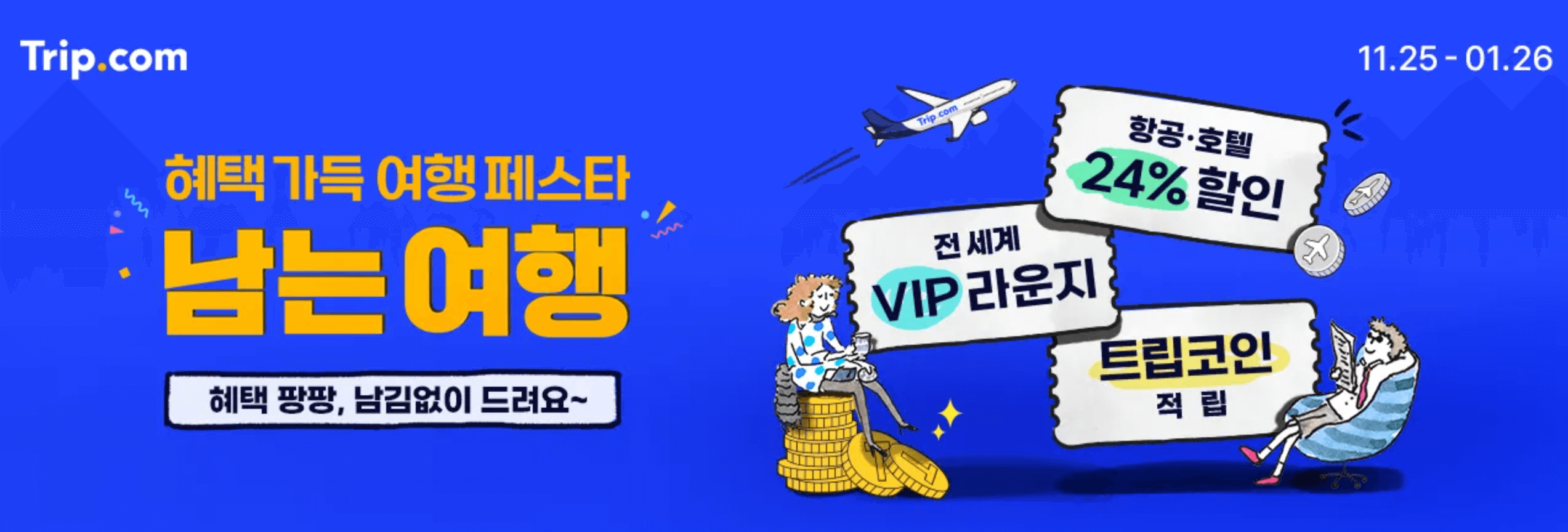 트립닷컴은 정기적으로 할인 이벤트와 프로모션을 진행합니다. 신규 회원 가입 시 할인 쿠폰을 제공하거나, 특정 신용카드로 결제 시 추가 할인을 받을 수 있습니다. 또한, 여행 후기를 공유하고 포인트를 적립하면 다음 예약에서 사용할 수 있어, 트립닷컴 항공권으로 더욱 경제적인 여행이 가능합니다.